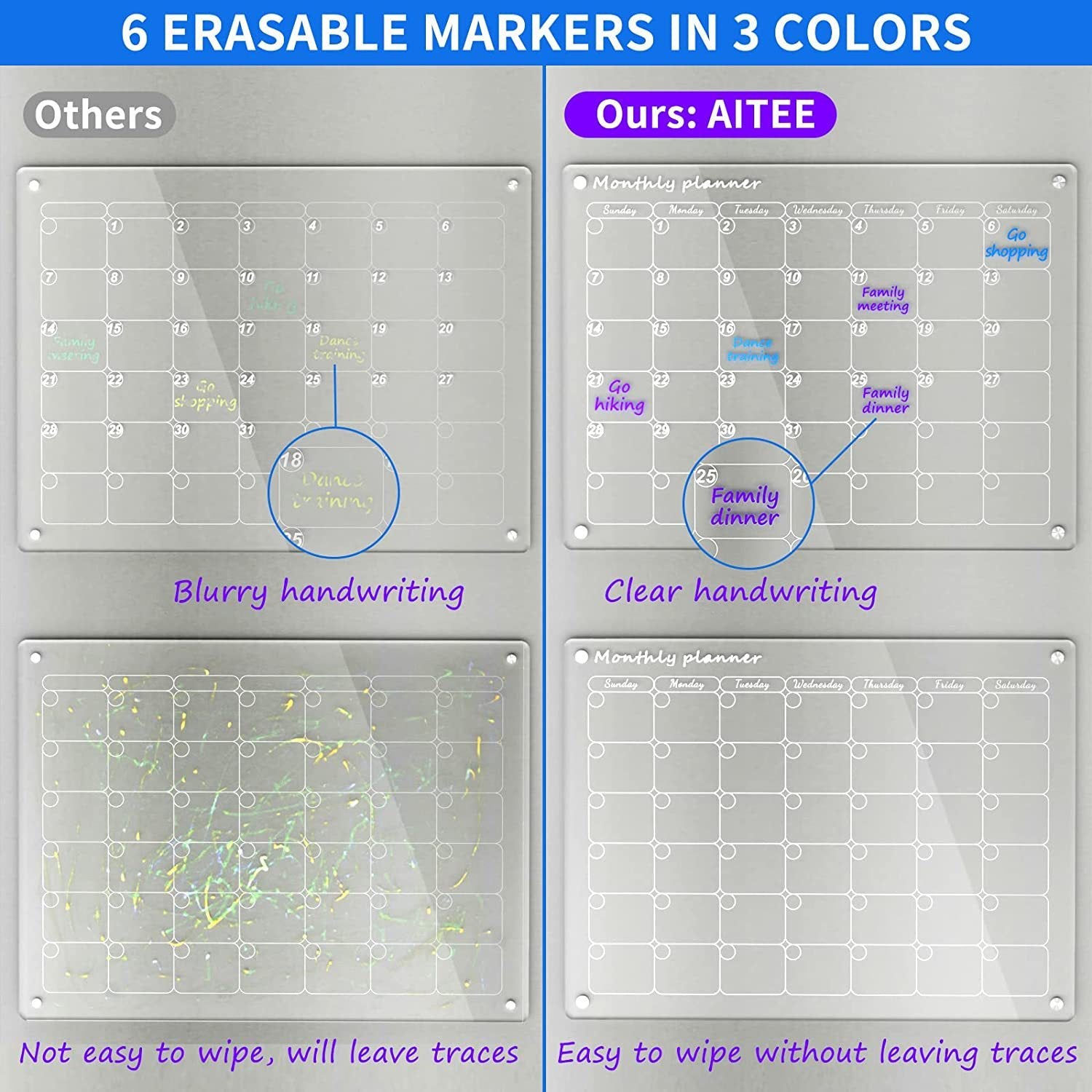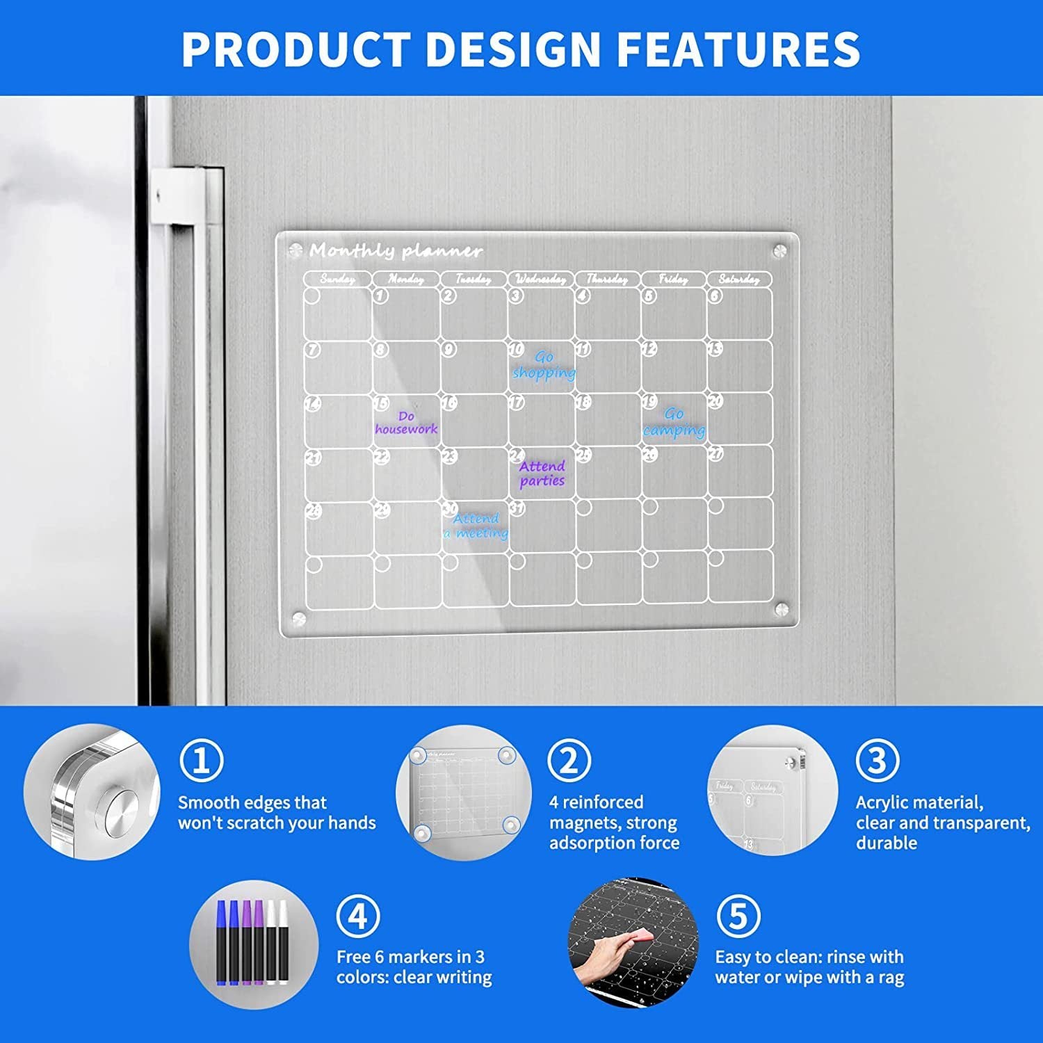 Magnetic Acrylic Dry Erase Calendar for Home & Office